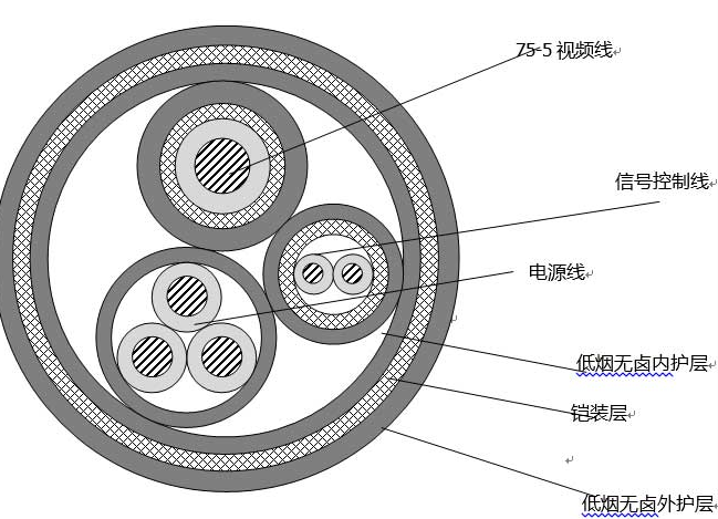 船用組合電纜(3+2+1)用途:用于大型船舶及海上石油平臺(tái)的視頻監(jiān)控系統(tǒng),作為綜合布線。